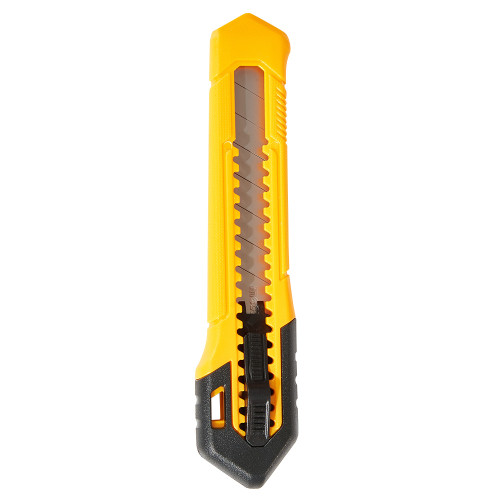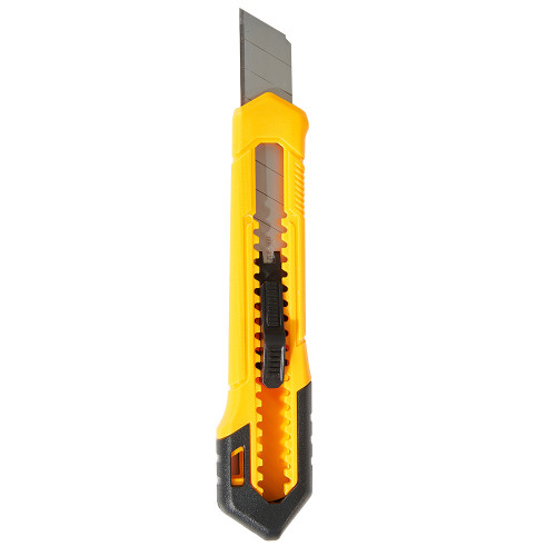 Корпус ножа виконаний з міцного ударостійкого пластику з ергономічною формою, що забезпечує надійний хват та комфорт навіть під час тривалої роботи. Механізм фіксації леза дозволяє точно виставляти довжину ріжучої частини та надійно утримує її під час навантажень, запобігаючи зміщенню або випадковому складанню.