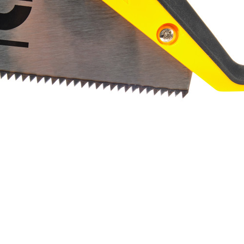 Ручка ножівки виготовлена з двокомпонентного матеріалу, що має ергономічну конструкцію. Це дозволяє інструменту зручно розташовуватись у руці, забезпечуючи надійне захоплення під час роботи. Ручка зменшує навантаження на кисть і дозволяє працювати без втоми навіть протягом тривалого часу, що робить процес розпилювання деревини більш комфортним і ефективним.