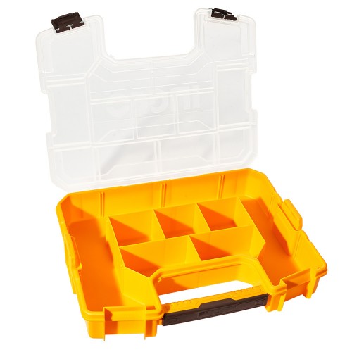 Завдяки легкій вазі, зручній ручці та надійним замкам органайзер легко переносити, транспортувати або зберігати на полиці, в майстерні, автомобілі чи гаражі.