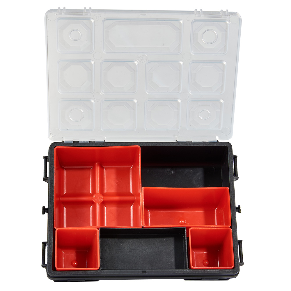 Цей органайзер стане вашим незамінним помічником як для домашнього майстра, так і для професіонала. Він дозволяє грамотно організувати зберігання інструментів та дрібних деталей завдяки грамотному поділу на секції.