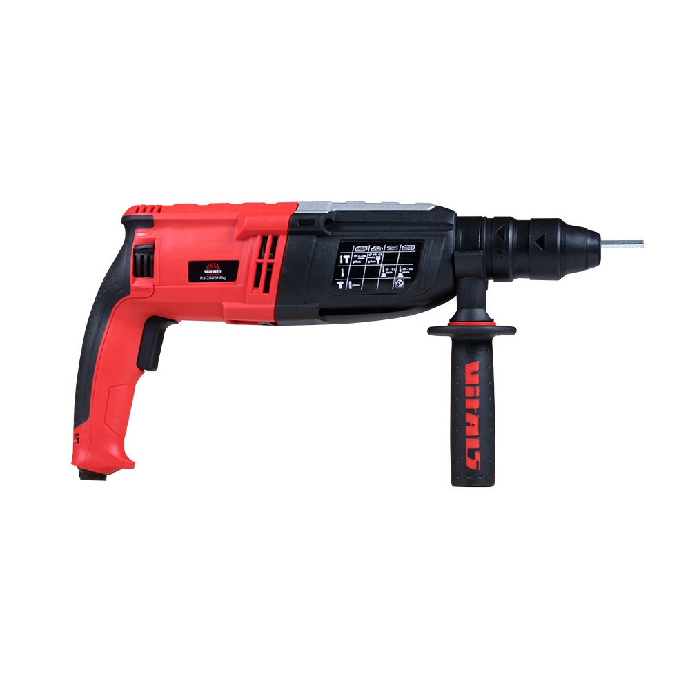 Перфоратор Vitals Master Ra 2885HBq має сучасний дизайн, надійний у роботі, простий у використанні й обслуговуванні, оснащений патроном із хвостовиком стандарту SDS-plus, який дає можливість легко і швидко замінити свердло, піку або долото.