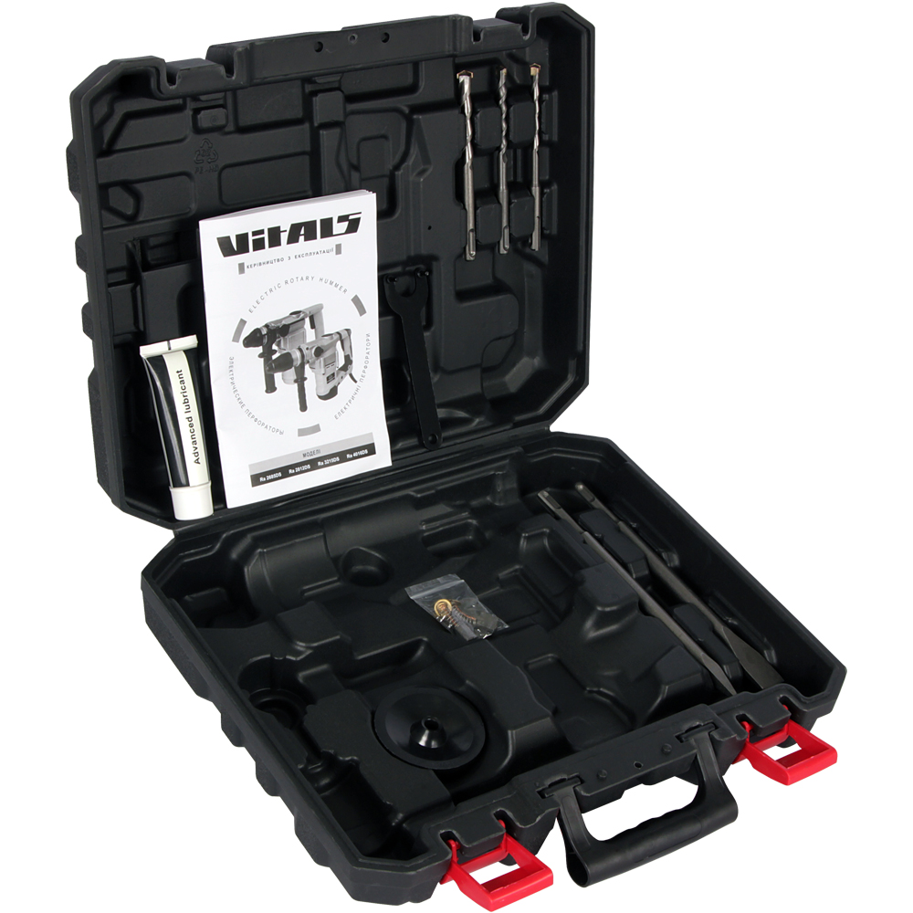 Відмінною особливістю перфоратора Vitals Master Ra 3215DS є велика потужність (1500 Вт) і дуже висока сила удару (5,5 Дж). Дана модель має три режими роботи: свердління з ударом, свердління без удару і удар без свердління.