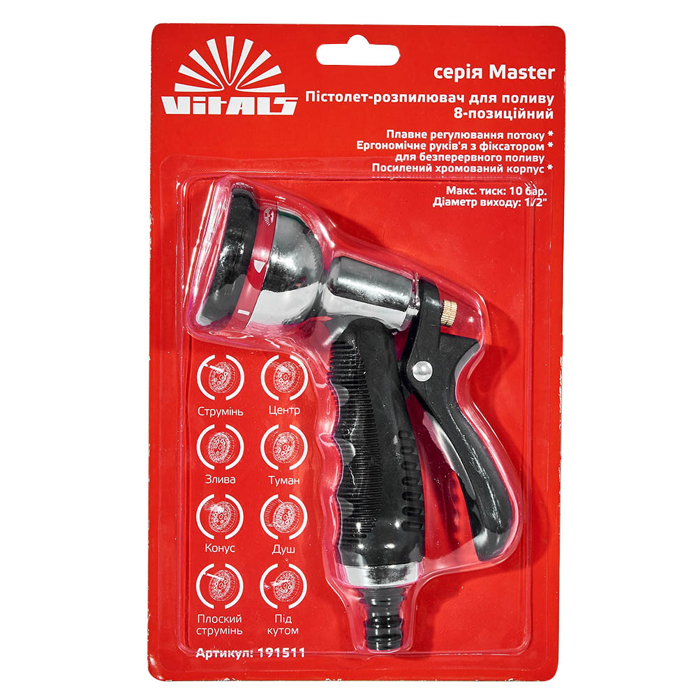 Пістолет-розпилювач 8-позиційний металевий хромований Vitals Master