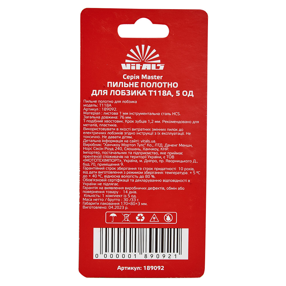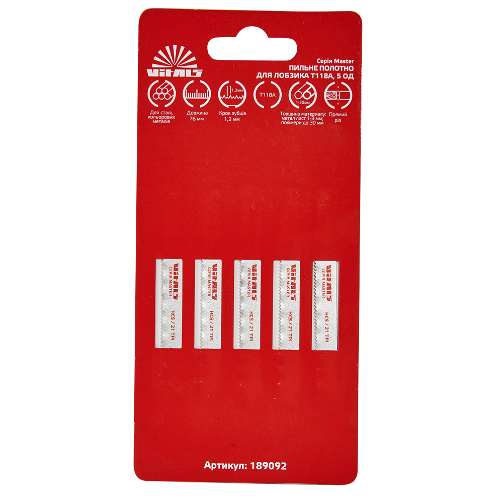 Пиляльне полотно для лобзика Vitals Master T118A (5 од.) — це високоякісні полотна, призначені для роботи з металами, пластиком та іншими твердими матеріалами. Вони ідеально підходять для точного та чистого різання, забезпечуючи ефективність і довговічність у процесі роботи.