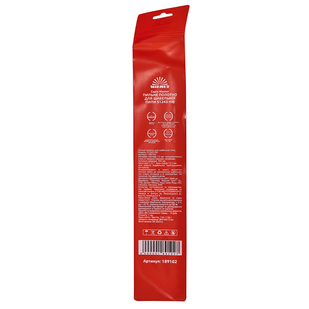 Полотно Vitals Master S1243 HM ідеально підходить для виконання складних завдань, таких як обрізка гілок дерев, різка металевих конструкцій, а також для робіт по ремонту та будівництву, де потрібна висока продуктивність та точність.