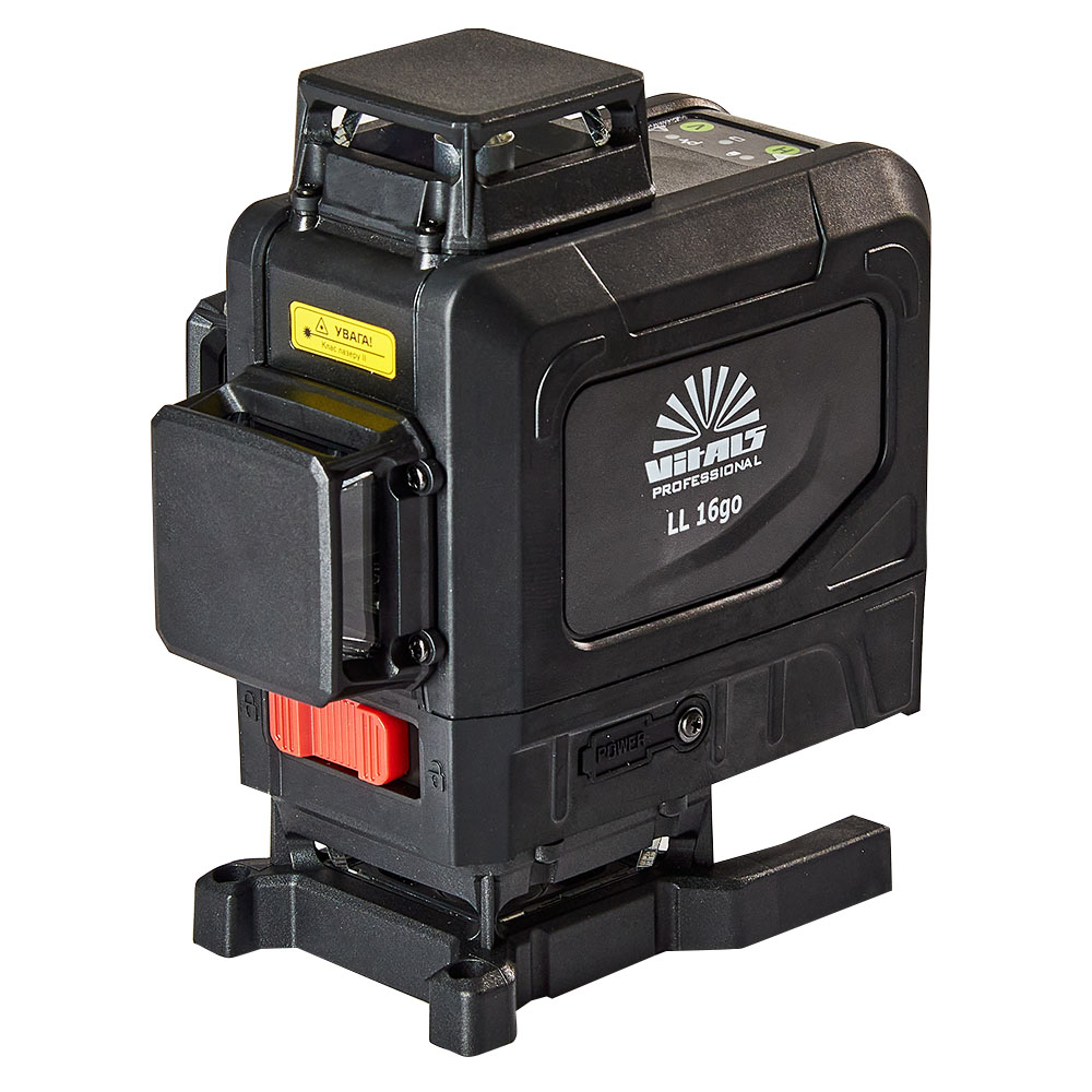 Рівень лазерний Vitals Professional LL 16go являє собою професійний лазерний рівень для побудови горизонтальних і вертикальних ліній. Ця модель проєктує дві горизонталі 360° та дві вертикалі 360°. Оскільки в моделі є нижня призма, її можна використовувати для роботи з плиткою та іншими підлоговими покриттями. Під час виробництва нівеліра використовується високоякісний діод торгової марки «Osram», який виробляється в Німеччині.