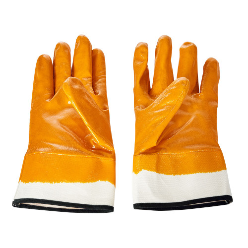 Ці рукавички виготовлені з міцного матеріалу та мають повне нітрилове покриття, що гарантує стійкість до масла, бензину та інших агресивних рідин. Манжет-крага забезпечує додатковий захист зап’ястя та нижньої частини руки від бризок і бруду.