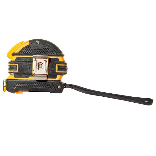 Корпус рулетки виготовлений з міцного пластику, що забезпечує стійкість до механічних пошкоджень. Механізм автостопа дозволяє зафіксувати стрічку на бажаній довжині, забезпечуючи точність вимірювань і зручність у використанні. Широка стрічка 25 мм надає додаткову стабільність під час вимірювань, а металізоване полотно дозволяє зберігати точність навіть під час тривалого використання.