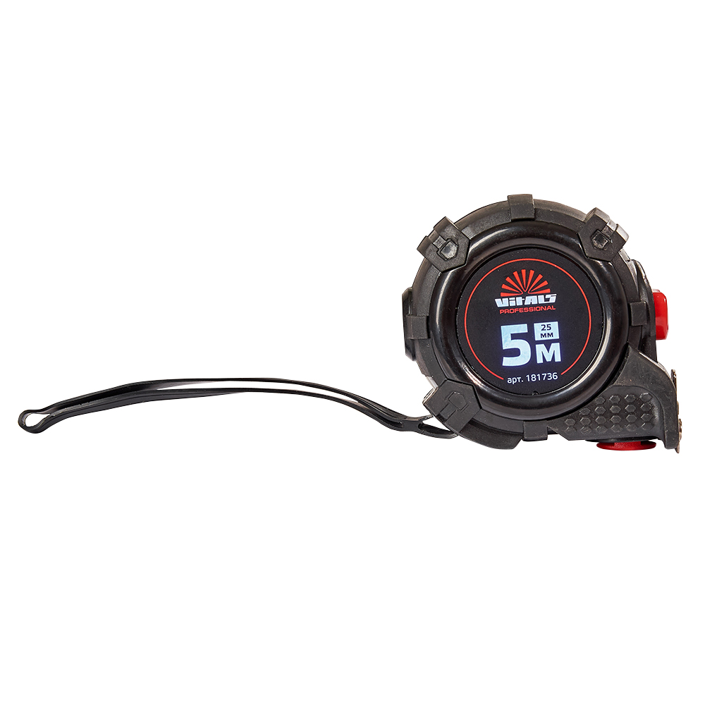 Рулетка гумова з нейлоновим покриттям полотна 5 м × 25 мм автостоп Vitals Professional