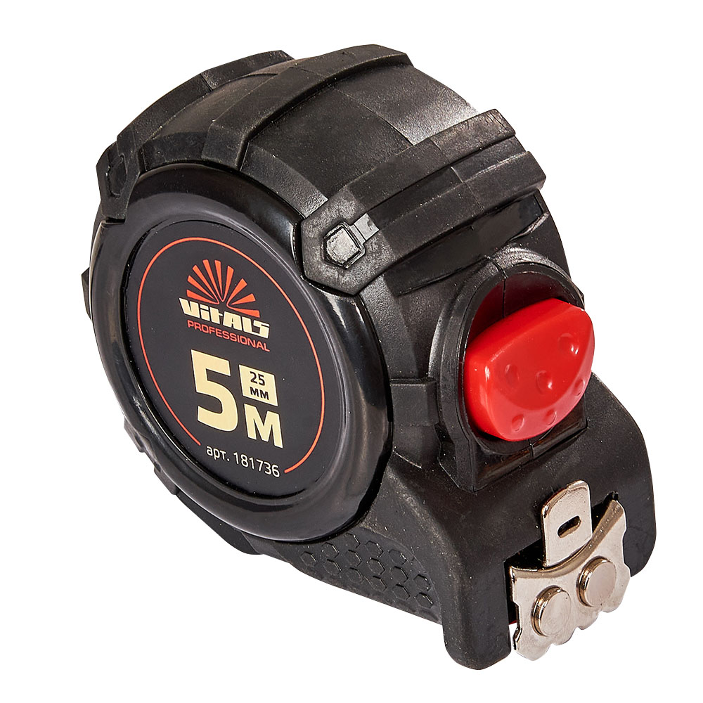 Особливості рулетки прогумованої з нейлоновим покриттям полотна 5 м × 25 мм автостоп Vitals Professional: