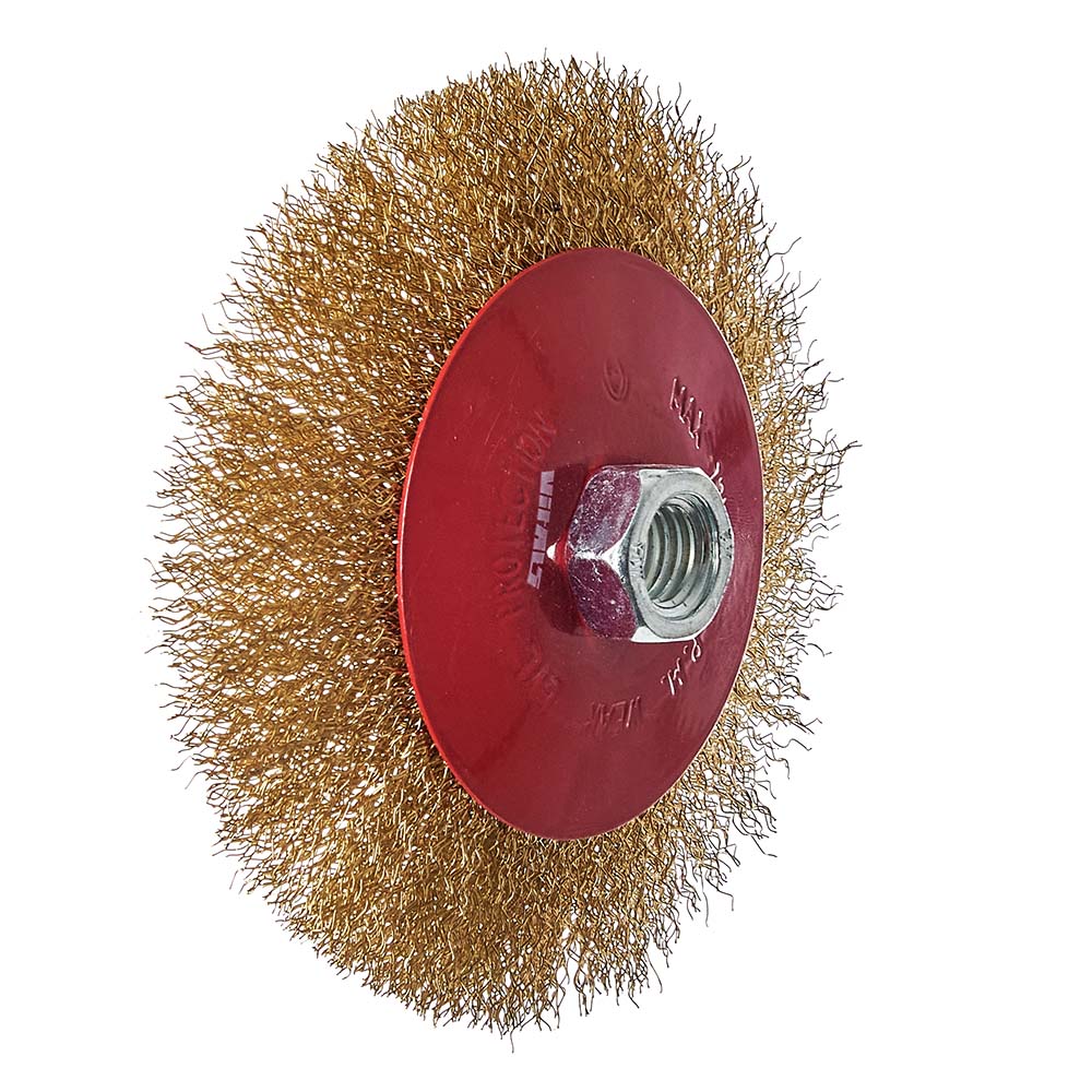 Характеристики на Щітка конічна Vitals гофрована латунована 125 мм М14, 0,3 мм