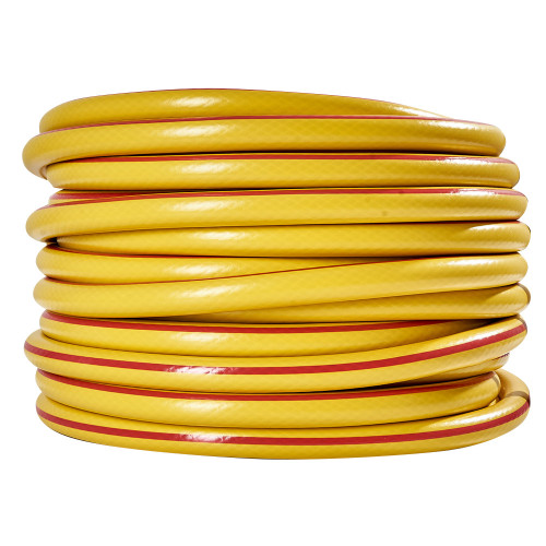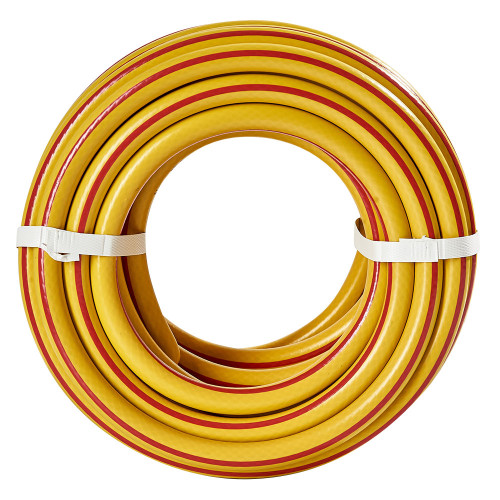 3. **Трислойова конструкція**: Шланг має внутрішній, середній та зовнішній шари. Внутрішній шар є гладкою трубкою з ПВХ, яка забезпечує вільний потік води. Середній шар армований хрестоподібними нитками, що надає шлангу міцності та стійкості до тиску. Зовнішній шар є захисною оболонкою, яка захищає шланг від механічних пошкоджень та впливу навколишнього середовища.