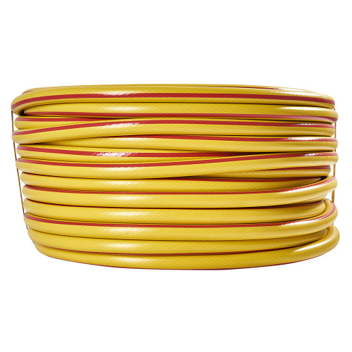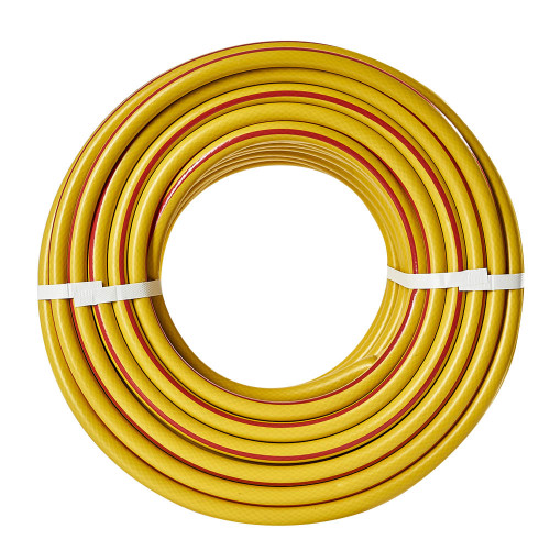 3. **Трислойова конструкція**: Шланг має внутрішній, середній та зовнішній шари. Внутрішній шар є гладкою трубкою з ПВХ, яка забезпечує вільний потік води. Середній шар армований хрестоподібними нитками, що надає шлангу міцності та стійкості до тиску. Зовнішній шар є захисною оболонкою, яка захищає шланг від механічних пошкоджень та впливу навколишнього середовища.