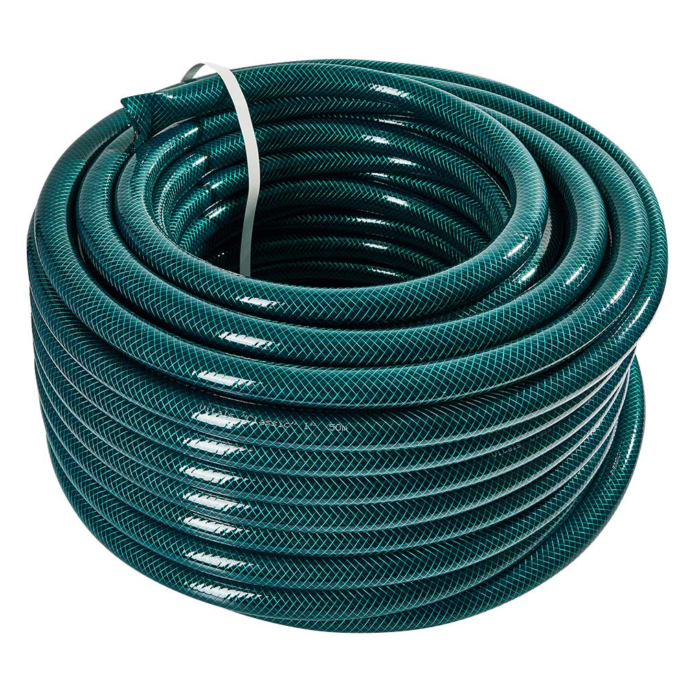 Середній шар – армований хрестоподібним плетінням із високоміцних поліестерних ниток. Ця технологія значно підвищує стійкість шланга до механічних навантажень, розтягування та внутрішнього тиску. Завдяки цьому конструкція витримує робочий тиск до 6 бар і максимальний розривний тиск до 12 бар, що забезпечує безпечне та довговічне використання навіть у складних умовах.