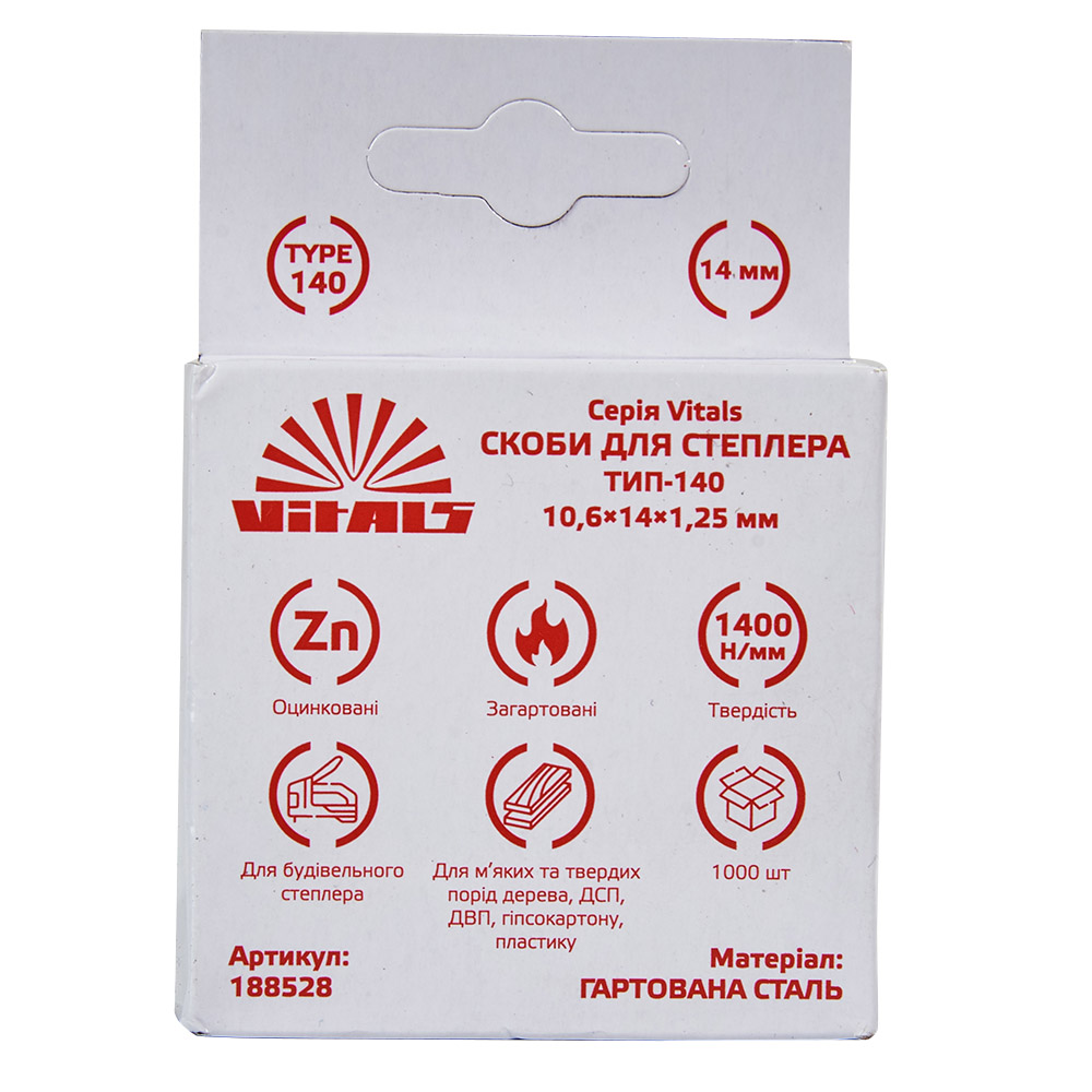 Особливості скоб для степлера тип-140 14 × 1,2 мм 1000 шт. Vitals: