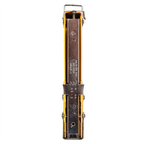 Корпус степлера виготовлений з міцного металу, що забезпечує стійкість до механічних навантажень і тривалий термін експлуатації. Інструмент ефективно застосовується для фіксації тканин, плівок, ізоляційних матеріалів, тонких панелей та оббивочних елементів до поверхонь з дерева, ДВП, ДСП та інших подібних основ.