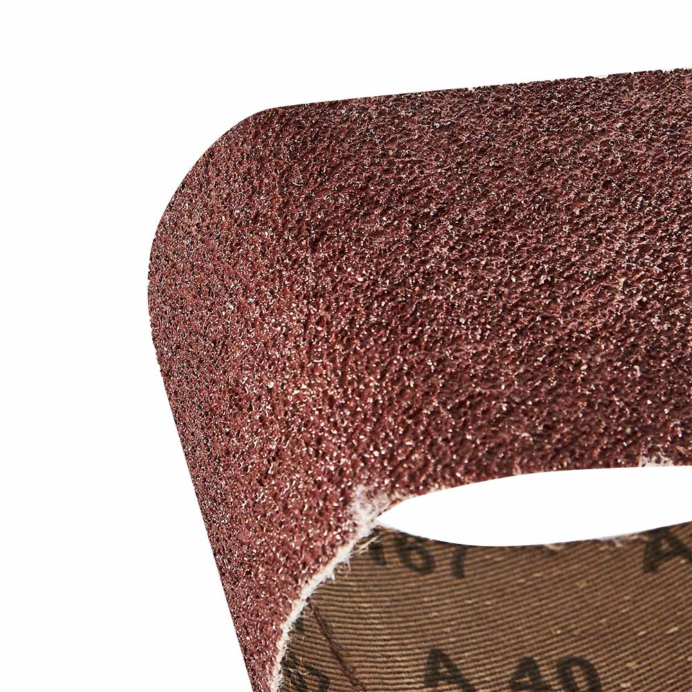 Основний матеріал стрічки - електрокорунд, який забезпечує ефективність та стійкість під час роботи з різними поверхнями. Тканинна основа стрічки міцна та еластична, що гарантує її тривалий термін служби і запобігає рванню під час використання, навіть з міцними матеріалами. Посилений тип сполучного шва підвищує міцність стрічки і запобігає її відвалюванню або розриву під час шліфування.