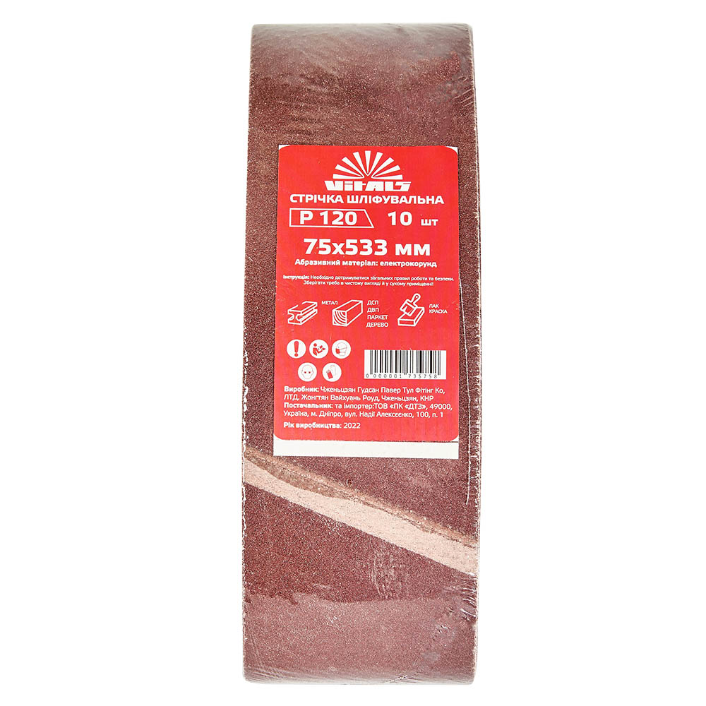 Характеристики на Стрічка шліфувальна Vitals 75х533 мм з. 120