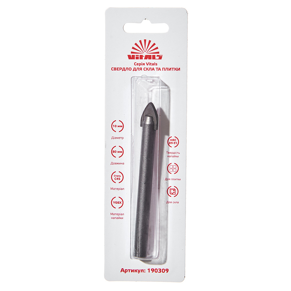 Свердло пікоподібне по склу та плитці 10 мм Vitals