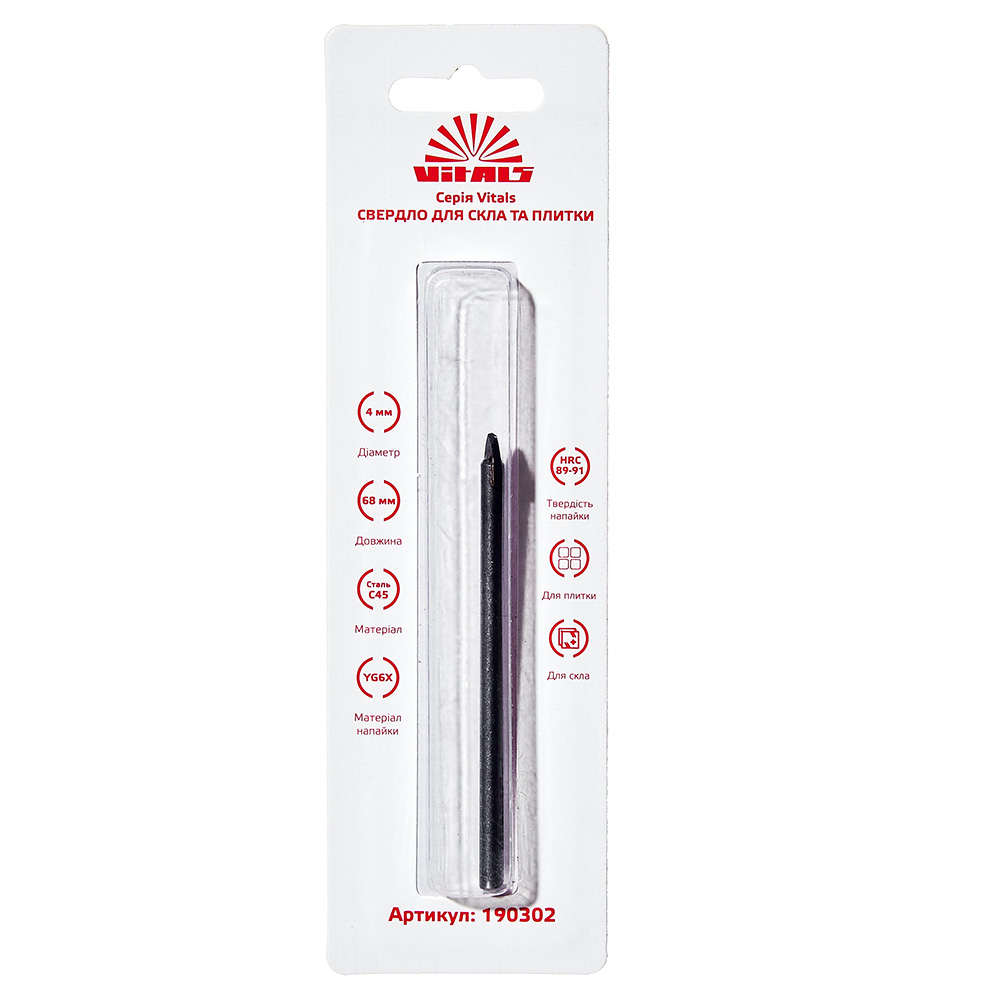 Особливості свердла пікоподібного по склу та плитці 4 мм Vitals: