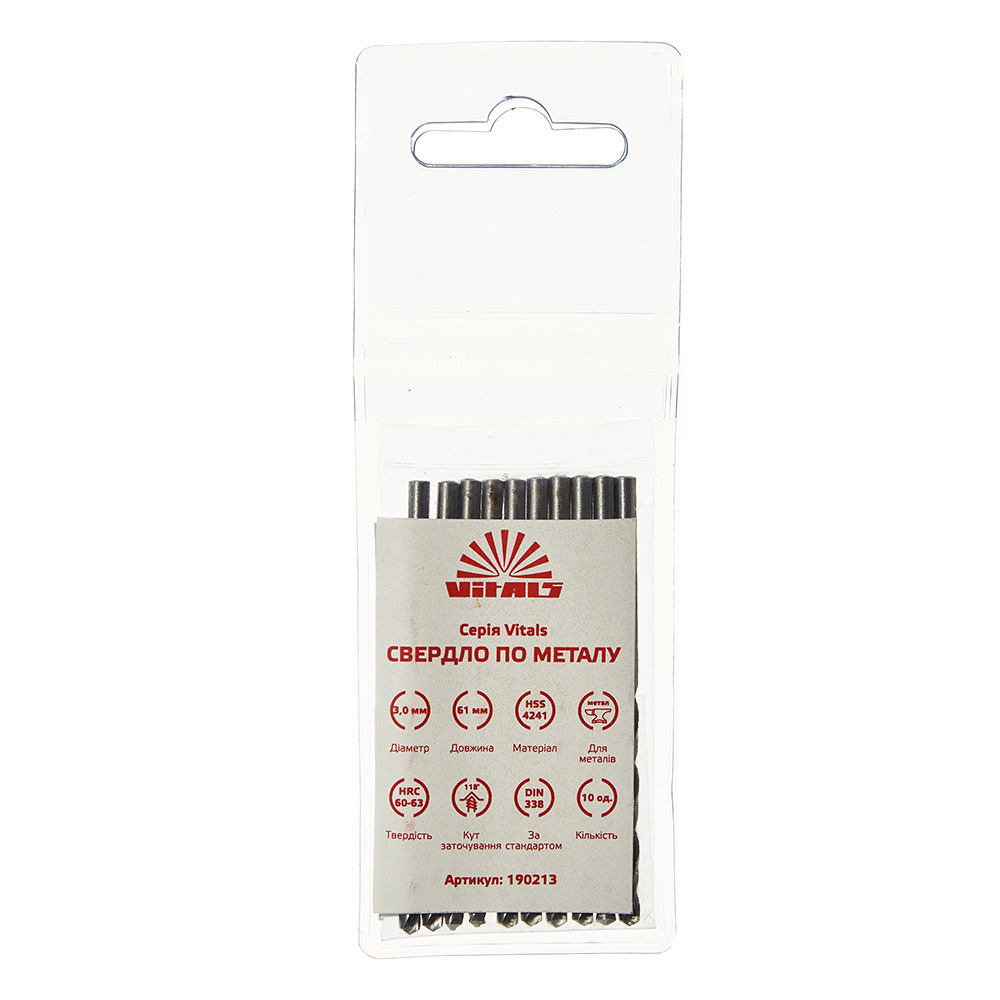 Свердло по металу HSS 3.0 Vitals — це високоякісне свердло для свердління отворів в різних металевих виробах. Виготовлене з швидкоріжучої сталі HSS 4241, що відзначається високою твердістю, зносостійкістю та термостабільністю, що дозволяє ефективно працювати з різними типами металів.