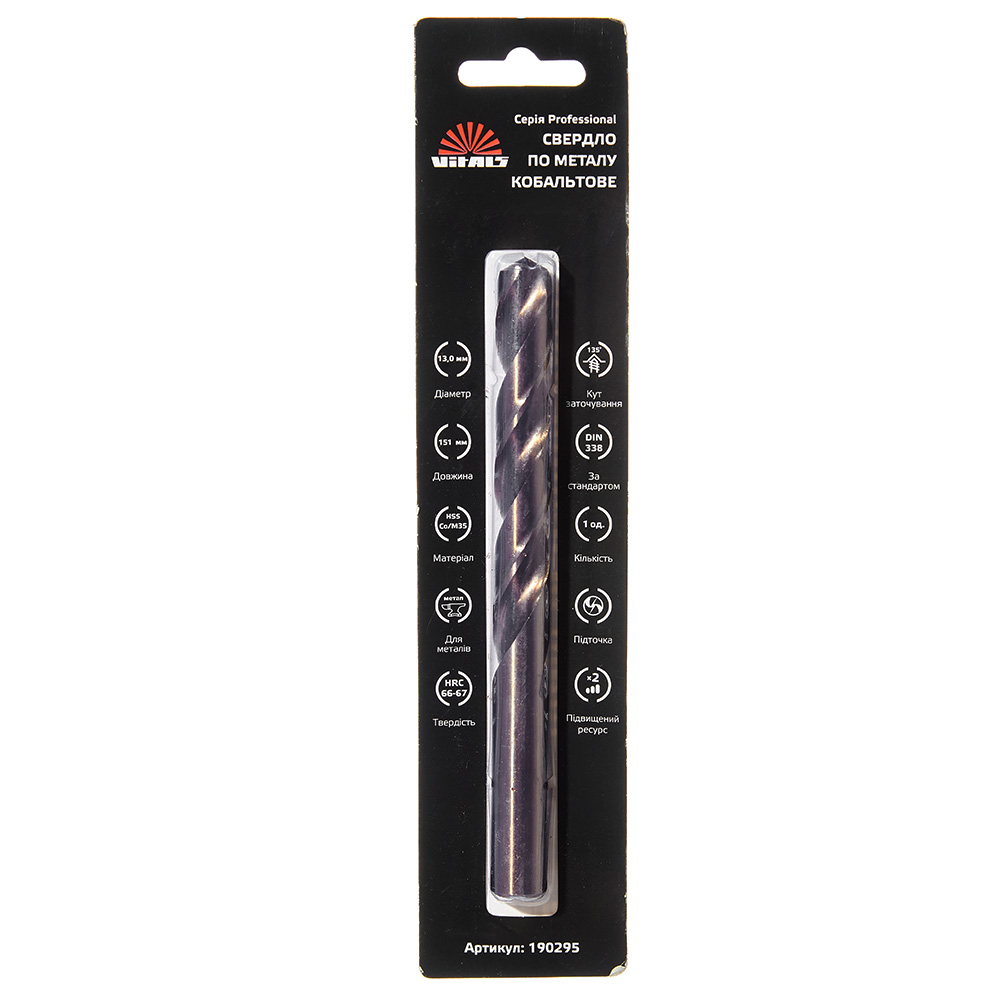 Характеристики на Свердло по металу HSS-Co/M35 13.0 (1 од.) Vitals Professional