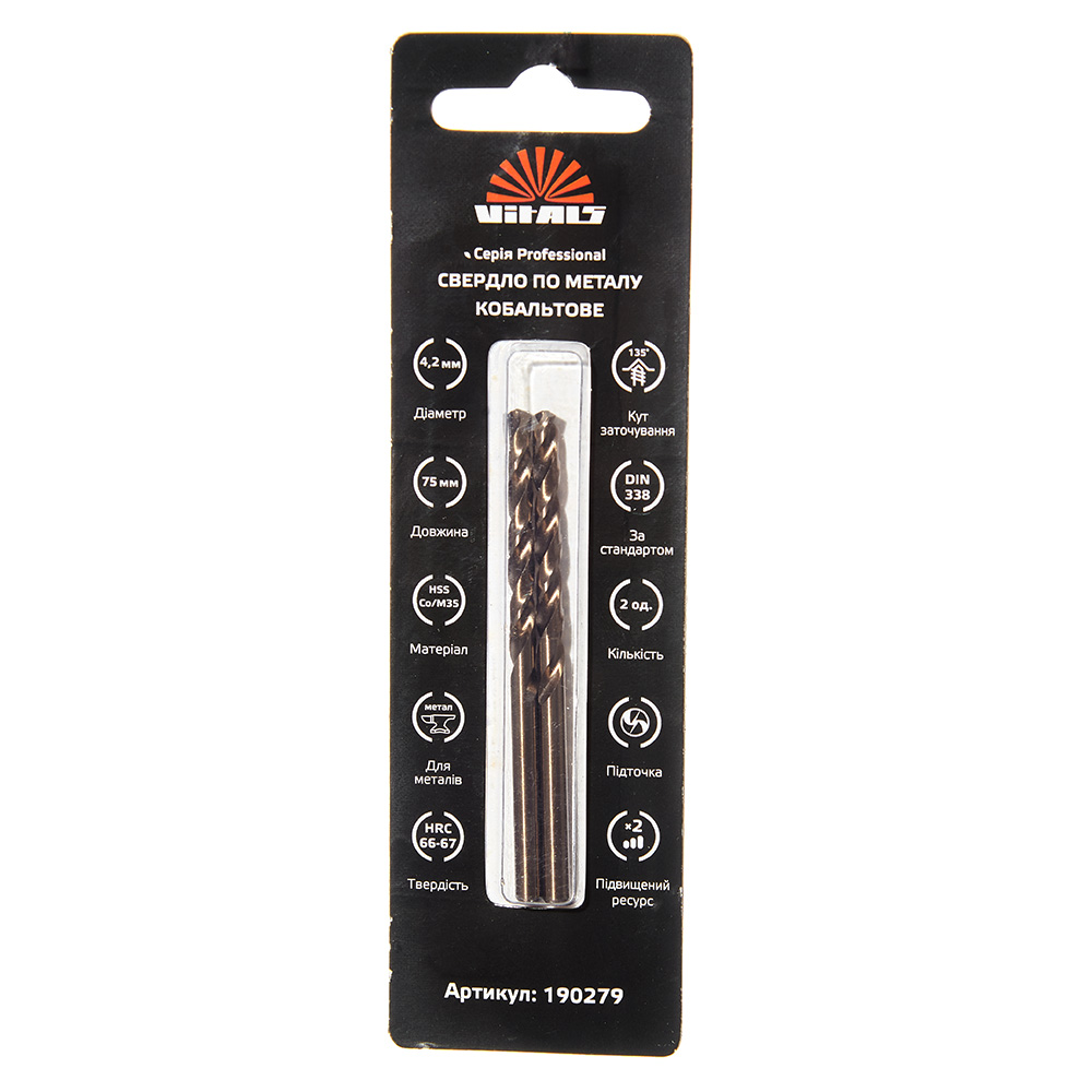 Свердло по металу HSS-Co/M35 4.2 (2 од.) Vitals Professional - це надійний інструмент, призначений для свердління отворів у найтвердіших і жаростійких металевих матеріалах.