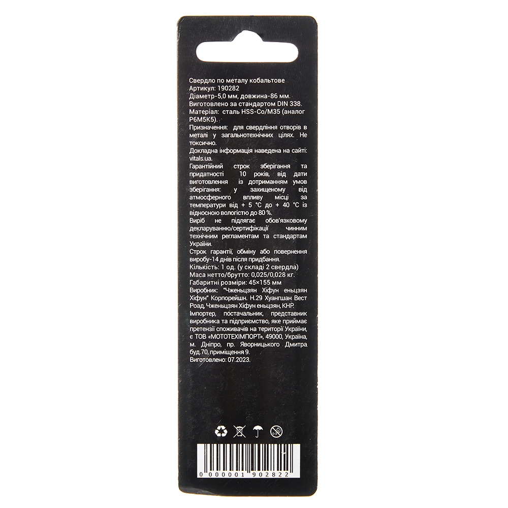 Свердло по металу HSS-Co/M35 5.0 (2 од.) Vitals Professional