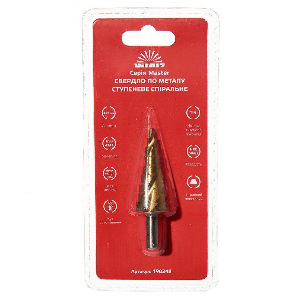 Свердло ступеневе спіральне 4–20 мм Vitals Master