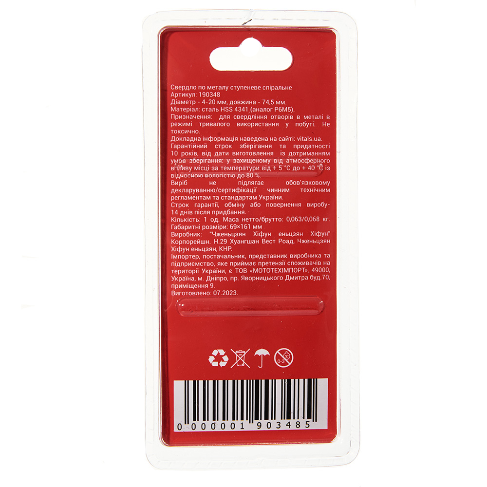 характеристики на Свердло ступеневе спіральне 4–20 мм Vitals Master