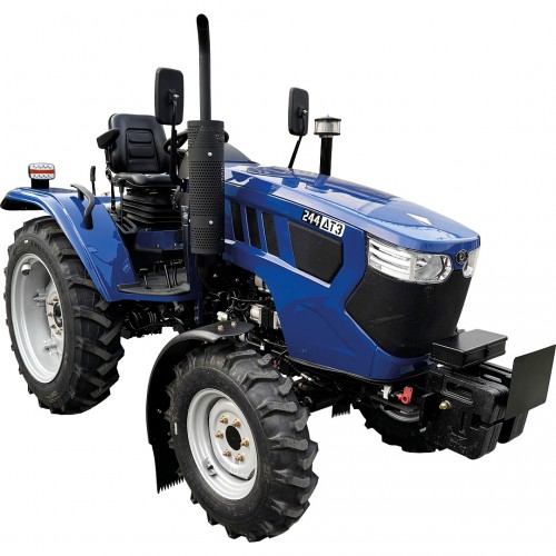 Трактор ДТЗ 244 — це універсальна повноприводна машина, створена для інтенсивного використання в сільському господарстві, комунальній сфері та інших галузях. Його потужний трициліндровий дизельний двигун ДД390 з об’ємом 1,9 л забезпечує 24 к.с. і характеризується високим моторесурсом, економною витратою пального та електрофакельним підігрівом для легкого запуску в холодну пору. Завдяки широким колесам, підвищеному кліренсу та збалансованій конструкції трактор чудово почувається на пересіченій місцевості, а комфортне сидіння з підлокітниками, рівна підлога та ергономічне розташування органів керування забезпечують зниження втомлюваності під час тривалої роботи.