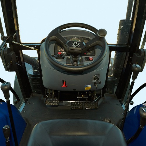 Комфортна закрита кабіна обладнана кондиціонером, опаленням, рівною підлогою та зручним сидінням на амортизаторі з регулюванням. Панель приладів електронна, із світловими індикаторами, що забезпечує легкий контроль за станом трактора під час роботи. Крім того, модель оснащена магнітолою, електророзеткою для причепа, передніми крилами та звуковою сигналізацією.