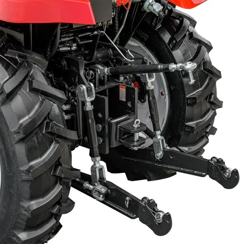 Задня трьохточкова навісна система з двома гідроциліндрами. ВОМ працює на 540 і 1000 об/хв. Є 4 гідровиходи з швидкороз’ємними муфтами (2 напорні, 2 сливні), керовані від основного гідрораспределителя. Буксирне пристосування — знімна маятникова цапфа. Передбачено додаткові вантажі: передні 6×11 кг, задні 2×25 кг.