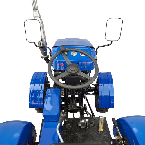 5. **Надійні гальма:** Трактор обладнаний барабанними гальмами та сухим багатодисковим зчепленням, що забезпечує ефективне гальмування та безпеку під час роботи.