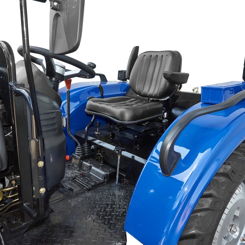 - Кабіна: Трактор не має кабіни, що дає більше свободи при роботі на відкритих майданчиках. Сидіння водія регулюється по відстані до руля для комфортної роботи.