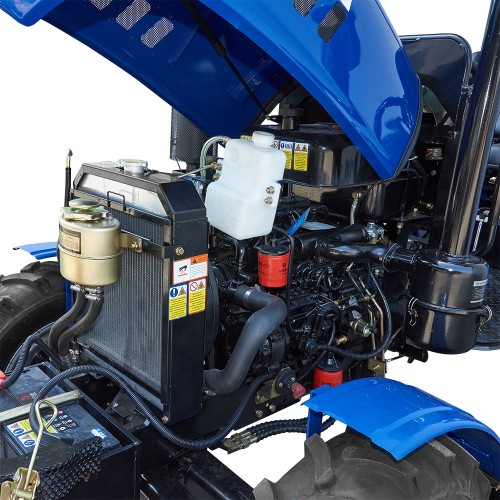 - Гідравлічна система: Гідрооб'ємне рулювання з окремим насосом і масляним баком дозволяє зручно і точно керувати трактором навіть на складних ділянках. Рулеве управління оснащене двостороннім симетричним гідроциліндром і має функцію швидкого рулювання для зручності маневрування.