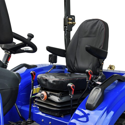 Серед інших важливих переваг моделі – гідравлічне рульове керування з окремим баком, зручні елементи управління з чітким маркуванням, сидіння з амортизатором та регулюванням по відстані до керма. Навісна система універсального триточкового типу з приводом на два гідроциліндри дозволяє використовувати широкий спектр сільськогосподарського обладнання: плуги, сівалки, борони, фрези, картоплесаджалки тощо. Двошвидкісний ВВП (540/1000 об/хв) розширює функціональність трактора для різноманітних навісних агрегатів.