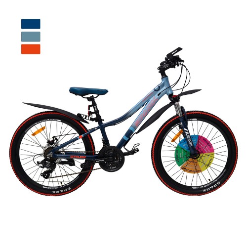 Велосипед має міцні алюмінієві ободи та покришки SPARK розміром 24*2,125, що гарантує стабільність та контроль на будь-якому покритті. Зручне сідло, підсідельний штир та гріпси з ПВХ забезпечують комфорт навіть під час тривалих поїздок.