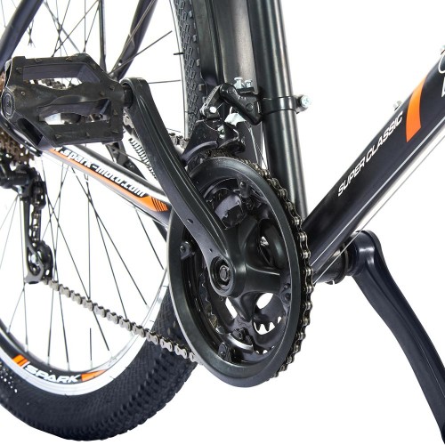 Комплектація велосипеда включає двостінні алюмінієві ободи з покришками розміром 27,5×2,1, які забезпечують впевнене керування як на асфальті, так і на бездоріжжі. Для регулювання швидкості встановлений перемикач на 21 передачу, який забезпечує безпечні поїздки.