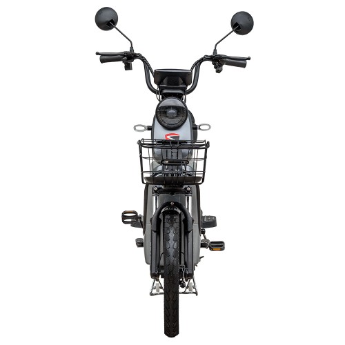 Велосипед з електромотором SPARK RIDER 14" 48V/500W/20Ah Сірий — це компактний і маневрений електровелосипед, який поєднує зручність класичного байка та мобільність маленького моторолера. Модель не потребує водійських прав і стане надійним помічником для дорослих і чудовим стартом для підлітків. SPARK RIDER підходить для будь-яких маршрутів: від прогулянки парком до поїздки на роботу, забезпечуючи комфорт, безпеку та свободу пересування. Компактні габарити дозволяють легко маневрувати в міському трафіку, а стильний дизайн із яскравими акцентами підкреслює індивідуальність користувача. Максимальна швидкість до 40 км/год забезпечує впевнену поїздку, а запас ходу до 40 км на одному заряді дозволяє використовувати велосипед цілий день без підзарядки. Три режими швидкості допомагають підібрати оптимальний темп для кожного маршруту, а вантажопідйомність до 150 кг дозволяє брати з собою покупки, рюкзак або спортивне спорядження. Потужний безщітковий мотор 500 Вт тягне байк по асфальту, грунтовці чи траві, а плавний старт і відсутність ривків роблять керування комфортним навіть при повному навантаженні. Акумулятор TIANNENG 48V 20Ah гарантує до 40 км пробігу на одному заряді та витримує понад 800 циклів без втрати потужності, заряджається від стандартної розетки 220 В за 6–8 годин. Передня гідравлічна вилка ефективно поглинає нерівності дороги, бруківку, ями та лісові стежки, а задня амортизація робить поїздку м’якою і стабільною. Барабанні гальма забезпечують чітке та надійне гальмування навіть на мокрому покритті. Велосипед оснащений дзеркалами заднього виду, поворотними сигналами, LED-освітленням і цифровою панеллю, що відображає швидкість, заряд батареї, пробіг і індикатори світла та поворотів. Металева передня корзина з антикорозійним покриттям витримує повсякденні навантаження, а сигналізація з пультом і сиреною підвищує безпеку. Колеса 20×2,5 з універсальними шинами забезпечують гарне зчеплення на асфальті, гравії та траві, а міцна сталева рама витримує до 150 кг. SPARK RIDER — це надійний, стильний і практичний електровелосипед для щоденних поїздок та активного відпочинку, а гарантія 1 рік на мотор і батарею забезпечує спокій і впевненість під час користування.