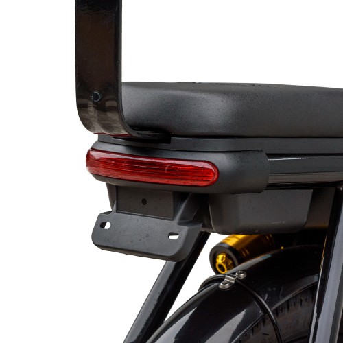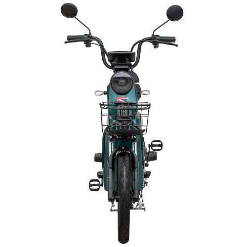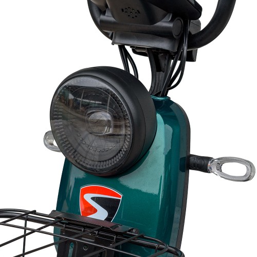 Передня гідравлічна вилка ефективно поглинає нерівності дороги, ями, бруківку чи стежки в парку, а задня амортизація додає м’якість ходу. Барабанні гальма на передньому і задньому колесі забезпечують надійне гальмування на будь-якому покритті, навіть мокрому. Металева передня корзина з антикорозійним покриттям витримує повсякденні навантаження і дозволяє зручно перевозити покупки або дрібні речі, а сигналізація з пультом і сиреною підвищує безпеку під час паркування.