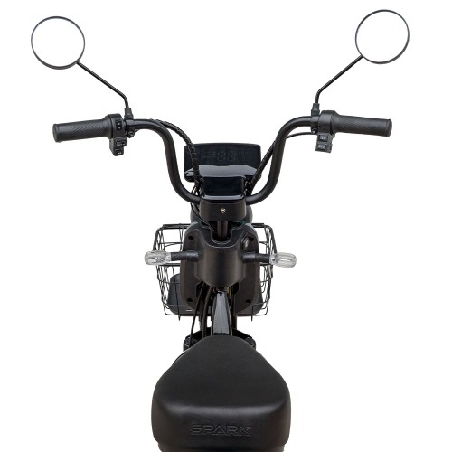 Дзеркала заднього виду на регульованих кріпленнях і поворотні сигнали забезпечують безпеку в місті та на велодоріжках, а цифрова панель на кермі відображає швидкість, заряд батареї, режим руху, пробіг і індикатори поворотів та дальнього світла. Колеса 20×2,5 з універсальними шинами забезпечують гарне зчеплення на різних поверхнях, а міцна сталева рама витримує навантаження до 150 кг. SPARK RIDER — це поєднання надійності, стилю та практичності, готовий до будь-яких поїздок, а гарантія 1 рік на мотор і батарею забезпечує спокій і впевненість користувача.