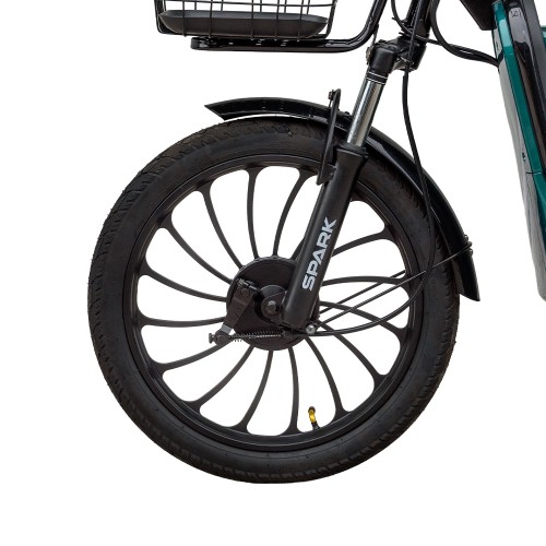 Потужний безщітковий мотор на 500 Вт тягне байк по асфальту, грунтовці чи траві. Розгін плавний і м’який, без ривків, що забезпечує комфортну і впевнену їзду навіть із повною корзиною. Надійна батарея TIANNENG 48V 20Ah забезпечує до 40 км пробігу, заряджається від стандартної розетки 220 В за 6–8 годин та витримує понад 800 циклів без втрати потужності, що робить SPARK RIDER зручним для щоденного використання.