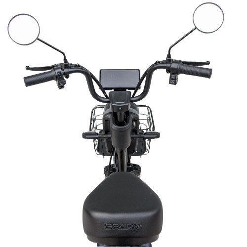 Для зручності поїздок SPARK RIDER PRO оснащений металевою передньою корзиною з антикорозійним покриттям для перевезення покупок, сумок або напоїв. Сигналізація з пультом і гучною сиреною забезпечує надійний захист від крадіжки. Регульовані дзеркала заднього виду та вбудовані поворотники підвищують безпеку руху, дозволяючи контролювати транспорт позаду без необхідності обертати голову.