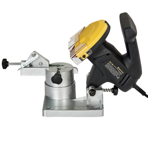 Верстат має міцну алюмінієву станину, яка забезпечує стабільність під час роботи та дозволяє надійно закріпити пристрій на робочій поверхні. Поворотна база з градуйованою шкалою дозволяє точно налаштовувати кут заточування ріжучих зубців ланцюга в діапазоні ±35°, що забезпечує універсальність використання для різних типів ланцюгів.