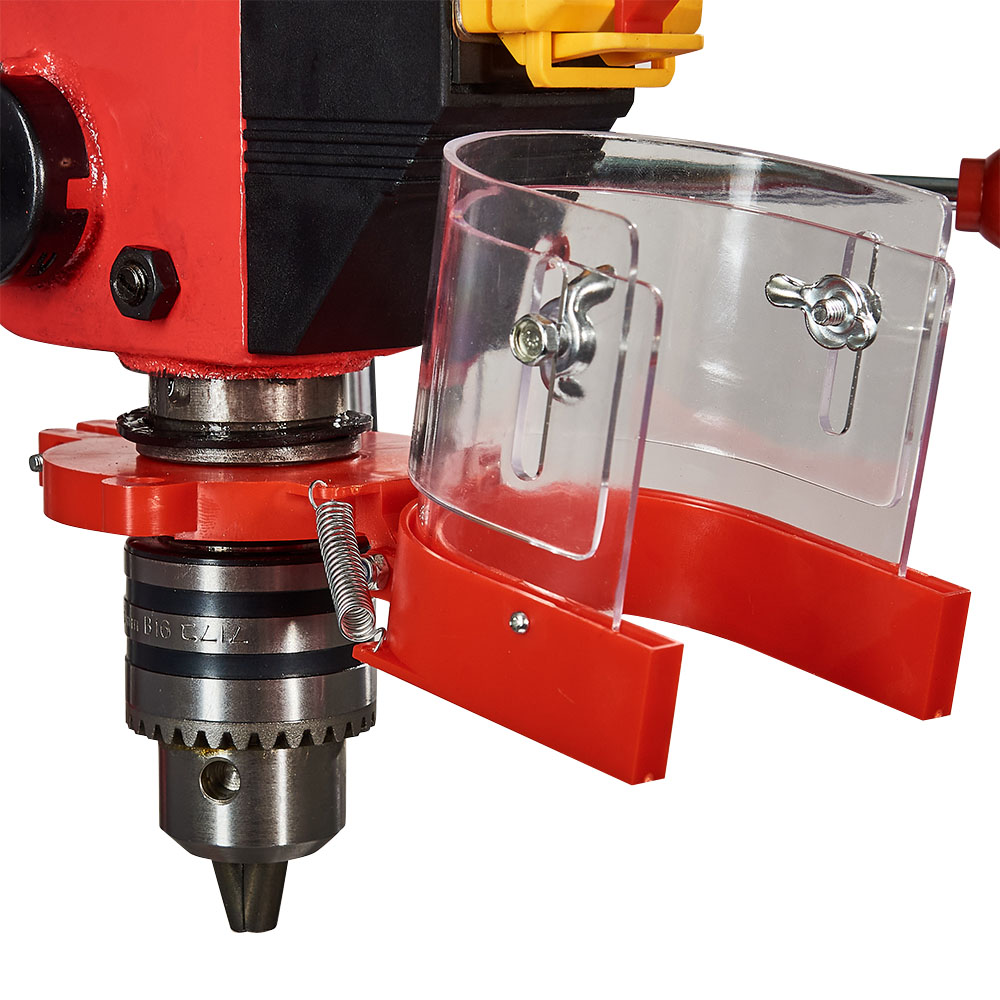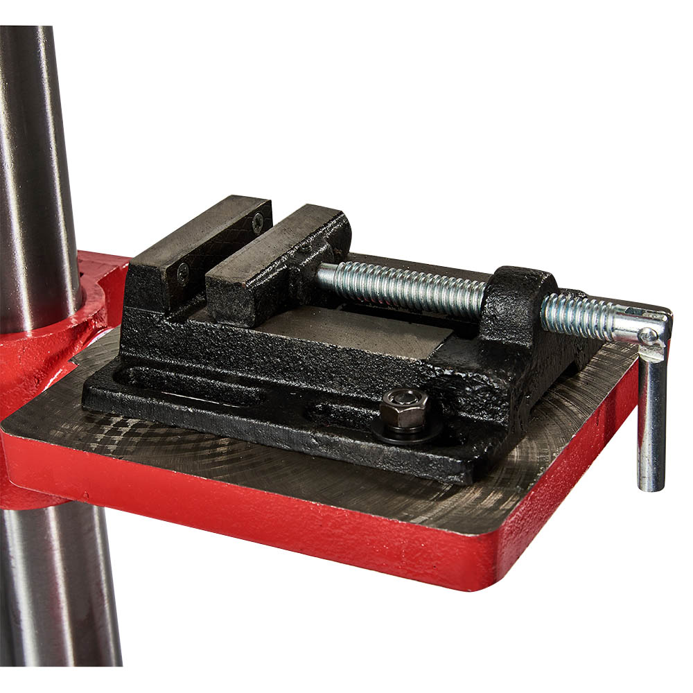 Верстат оснащений 16-міліметровим свердлильним патроном, який забезпечує надійне кріплення свердлильного інструменту. До комплекту постачання входять лещата, які гарантують стабільну фіксацію оброблюваного матеріалу, забезпечуючи надійність під час свердлувальних операцій.
