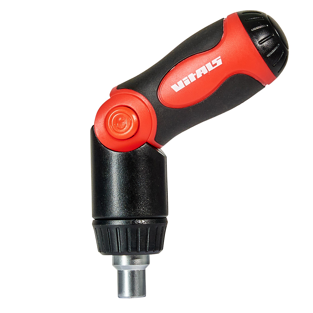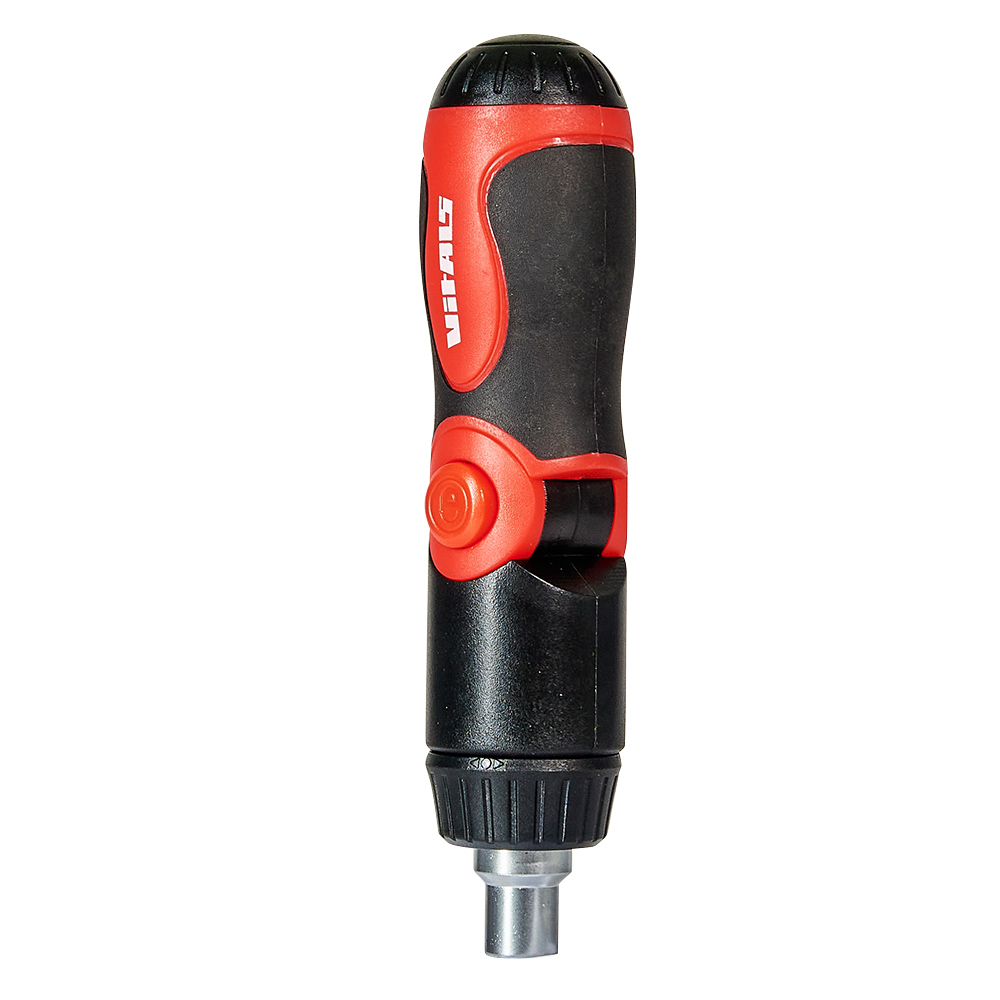 Викрутка оснащена тріскачкою з нахилом вліво та вправо. Шарнірний механізм дозволить налаштувати інструмент на зручний кут для експлуатації у важкодоступних місцях.