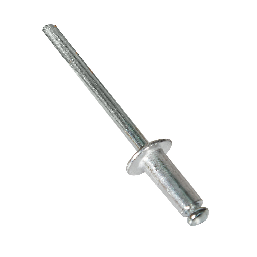 Корпус заклепок виготовлений з високоякісного алюмінію, що забезпечує легкість, стійкість до впливу вологи та атмосферних чинників. Такий матеріал не іржавіє, не піддається деформації при монтажі та гарантує тривалий термін експлуатації. Заклепки мають стандартну форму з напівкруглою головкою, яка рівномірно розподіляє тиск і запобігає пошкодженню зʼєднуваних поверхонь.