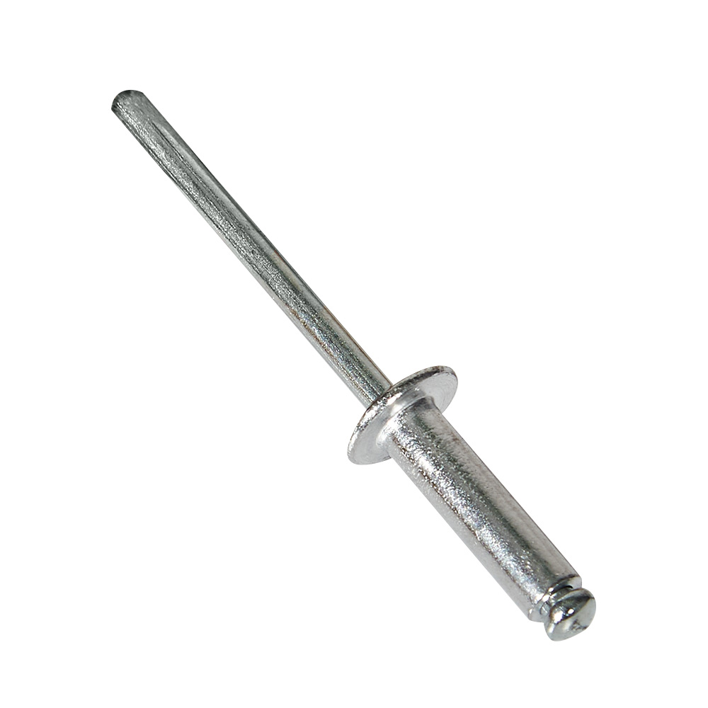 Корпус заклепок виготовлений з високоякісного алюмінію, що забезпечує легкість, стійкість до впливу вологи та атмосферних чинників. Такий матеріал не іржавіє, не піддається деформації при монтажі та гарантує тривалий термін експлуатації. Заклепки мають стандартну форму з напівкруглою головкою, яка рівномірно розподіляє тиск і запобігає пошкодженню зʼєднуваних поверхонь.